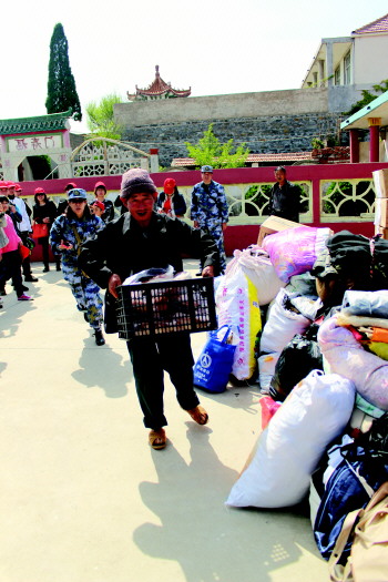 本报5月11日讯(记者 孙淑玉 实习生 衣涛) 10日上午,烟台前线论坛网友志愿者服务队的30余位志愿者带着募集的上千件物资来到海阳市小纪镇敬老院,为78位老人送去温暖。 10日早上7点,志愿者集合将爱心物资装车。网名“顺风飞翔”的孙旭峰是活动的发起人,清明节期间他偶然路过小纪镇敬老院,看到老人们的生活环境,他心里一阵阵难受,回来后开始在论坛内发起募捐倡议,引起广大热心网友的关注。 “他们都是孤寡老人,平时也没件像样的衣服,生活条件太艰苦了。”孙旭峰说,下一步志愿者打算尝试为老人联系厂家多安装些太阳能,现在78个人共用一个太阳能,轮着洗一次澡都得好长时间。 本次活动的组织者之一牟军说,这批物资他们一共募集了一个月,“像旧电视、DVD、电磁炉、衣服、被子、床单这些太多了,都没法统计,加起来少说也有上千件。”牟军说,除了生活用品外,他们还为老人们准备了一些猪肉,希望能改善老人们的伙食。 上午9点左右,志愿者一行抵达海阳小纪镇敬老院,看着志愿者们带来的物资,老人们纷纷围了过来。“这些肉快化冻了,赶紧抬到仓库。”话刚说完,一位老大爷主动搬起一箱猪肉就往仓库方向走去。其他老人见状,也主动扛起了箱子。 送完物资后,志愿者们又忙着陪老人聊天、给老人整理房间。志愿者队伍中年龄最小的孩子仅3岁,年龄大的孩子14岁,人小热情却不减,孩子们争着为老人换床单、逗老人开心。“看着这些孩子,心里头高兴。”一位老奶奶摩挲着小志愿者的手,不愿意放开。 烟台前线论坛网友志愿者服务队与海阳市小纪镇敬老院签署了帮扶结对协议。“这只是第一批物资,我们还会继续筹措,争取从根本上提高这些老人的生活质量。”孙旭峰说。