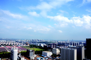 11日,一场降雨过后,天空犹如被洗过一样透澈。市区迎来清澈的蓝天,不少市民到户外感受久违的好天气。 本报记者 马志勇 摄