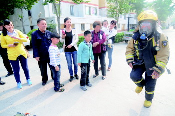 本报菏泽5月11日讯(记者 邢孟) “这么学习消防知识既过瘾又深刻。”11日下午,本报消防知识进社区活动来到牡丹嘉园小区。活动现场,消防官兵们给居民详细讲解了日常生活中常见的消防安全常识、手把手教居民使用灭火器。居民们还现场试穿了消防服等消防装备,不少居民都大呼“过瘾”。 春夏之际,天气干燥,杨絮柳絮纷飞再加上刮风等因素,使其成为火灾的高发期,本报发起“消防知识进社区”活动,联合菏泽经济开发区公安消防大队岳程中队的消防官兵走进居民小区,为小区居民现场讲解消防安全常识。 11日下午,本报联合菏泽经济开发区公安消防大队岳程中队的消防官兵开展的“消防知识进社区”活动第一站来到牡丹嘉园小区。“消防知识很重要,平时没有机会学,现在正好可以学一学。”67岁的窦大爷本来要和老伴带着9岁的外孙出去玩耍,看到消防官兵们正在小区广场上讲解消防知识,便决定停下来好好听一听。 在讲解完消防安全常识后,消防官兵们还给居民现场演示了干粉灭火器的使用方法,不少市民还亲自试了一把。随后,消防官兵还给居民们详细讲解了消防服的穿法及一些必备装备的用途及使用方法。当消防官兵们用不到一分钟将消防服穿好后,现场居民还响起阵阵掌声,对于消防官兵们的消防装备左摸摸右碰碰,感觉十分新奇。不少居民还主动报名,要求试穿这套装备。 “平时都是在电视上或者书上了解消防常识,这么近距离接触消防车和消防服还是第一次,这种体验是花钱也买不到的。”活动现场,65岁的张德银笑着说道。“学习消防安全常识大有用处,一旦碰到火灾不仅能自救还能帮助别人,以后多搞些这种活动,我们很受益。”另一位小区居民向记者说道。