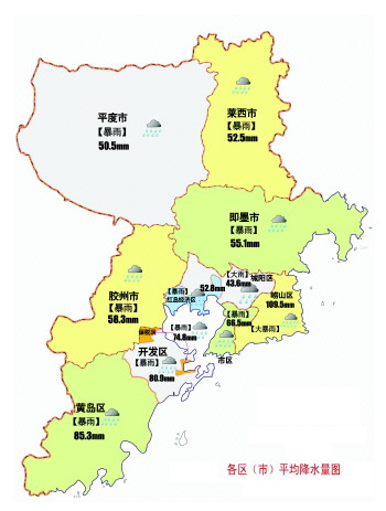 本报记者 杨广帅 摄 |  | 10日—11日平均降水量图。(图片由青岛市水文局提供) |
