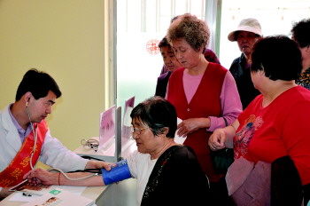 母亲节前夕,胶州中云街道办事处芙蓉社区与附近一家医院取得联系,将医疗设备搬进社区,免费为社区内近百名老人查体看病,行动不便的老人直接入户,老人足不出户就可以享受免费做B超、测量血压、心电图和血糖等服务。