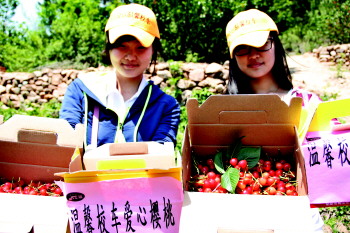 | 交运校车志愿者自己采摘的爱心樱桃。