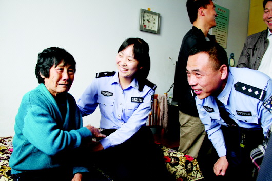 | |  | 临别之际,老人舍不得照顾了她多天的民警。 |