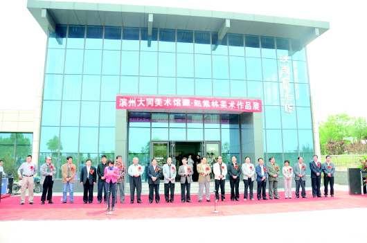 本报5月11日讯(记者 郗运红) 10日,由滨州书画联盟、滨州收藏家协会、滨州大同美术馆、沃龙艺术馆、紫林美术馆、东方画馆、雅石斋联合举办的大同美术馆藏赵紫林书画展在博兴隆重开幕,此次展览为期5天,共计展出赵紫林43幅精品力作,多位嘉宾到场并纷纷致辞表示祝贺。 赵紫林,1937年生,山东博兴人。1961年毕业于山东艺专美术系,教授、国家一级美术师,中国美术家协会会员,紫林美术馆荣誉馆长,山东画院高级画师,滨州市美协名誉主席,滨州画院名誉院长,曾任滨州市美协主席,山东美协理事。本次展出作品纯净古朴、造型浑厚、笔墨简约、以意造型,吸引了众多专业人士和美术爱好者参观。 “欢迎家乡父老横挑鼻子竖挑眼。”开幕式上,赵紫林先生幽默地说,并对本次画展的主办单位和嘉宾及家乡父老表示感谢。开幕式刚刚结束,有位赵紫林书画爱好者,拿着一幅多前自己收藏的画来到现场,希望赵紫林老师帮忙鉴定一下是否是他的真迹。赵紫林一眼就看出这幅以“鸡”为主题的画作,正是他17年前讲课时所作,并欣然为这位藏友题款以作纪念。展览中,还有多年未见的老同事,听到有赵紫林的画展消息,特意赶来见一下老朋友,赵紫林均以作品集相赠。此次画展,浓浓的博兴乡情贯穿始终。 出席本次开展仪式的有滨州市有关领导,以及来自济南、东营、滨州等地的著名书画艺术家。