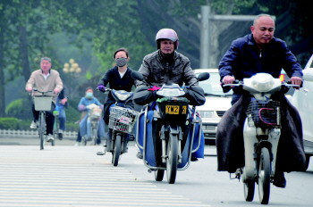 | 11日,很多市民穿上了厚衣服御寒。 本报记者 姜文洁 摄 |