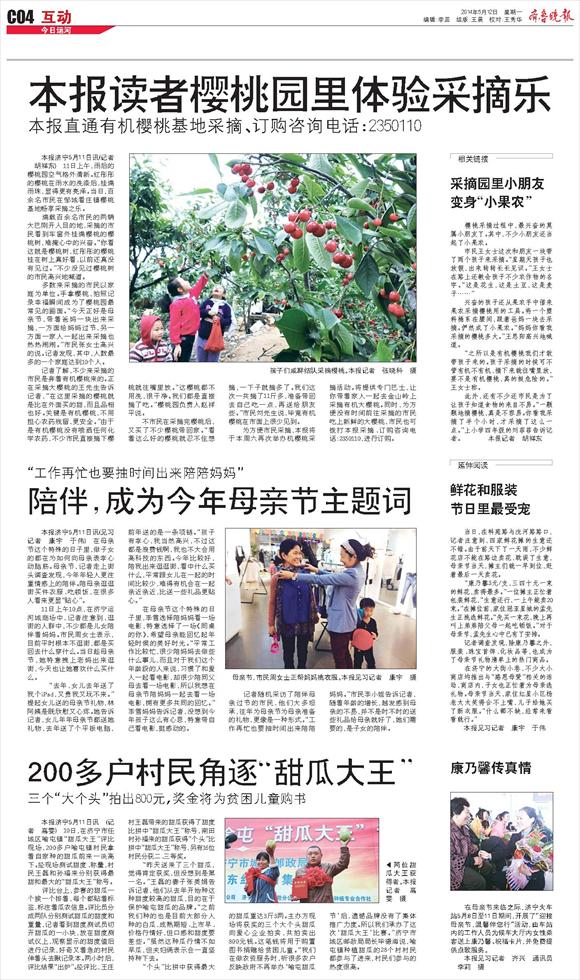 本报读者樱桃园里体验采摘乐