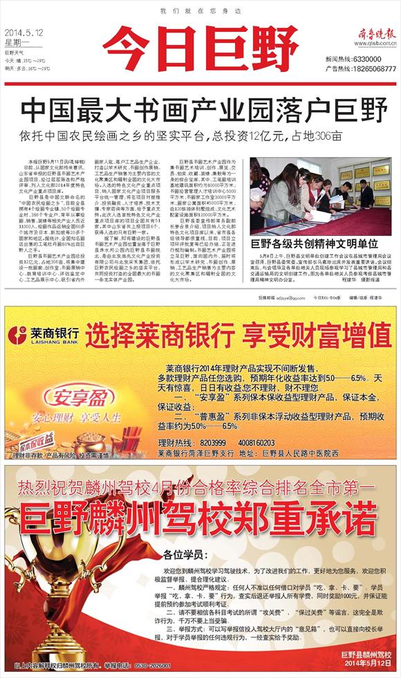 中国最大书画产业园落户巨野