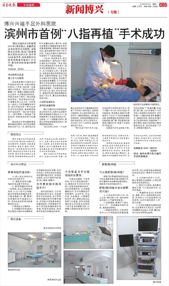 滨州市首例“八指再植”手术成功