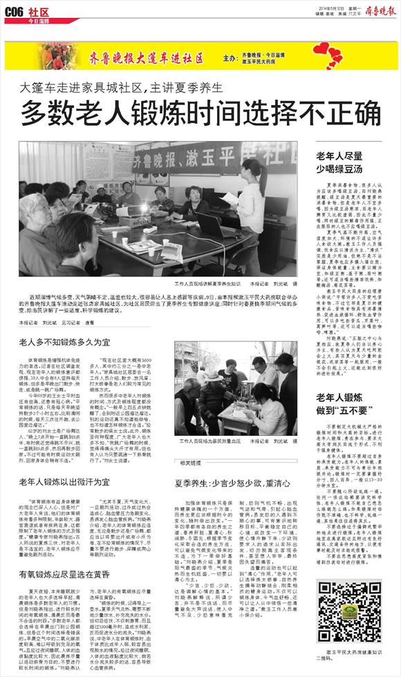 多数老人锻炼时间选择不正确