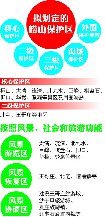 | 北九水、巨峰等纳入核心保护区,即墨鹤山、标山加盟大崂山保护圈 | |