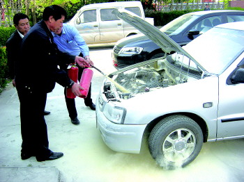本报5月12日讯(记者 徐艳 通讯员 牟海龙 刘春艳) 到车管所年审车辆的马女士怎么也没想到,自家的车辆竟然在车检现场自燃了。幸亏被现场车管民警及时发现、果断处置,从而避免了车主的损失。 5月6日下午,在日照交警东港大队车检现场的一辆灰色夏利轿车突然发生了自燃事故,在事故现场,惊魂未定的车主马女士介绍,事故发生时,她还坐在车里,正准备停下车等着车检,却见一负责车辆外检的车管民警用手指着轿车右前侧正冒烟的地方,她以为是轿车的右前轮胎漏气了。 此时,有另一位车管协勤人员立即从左后侧冲过来,关掉了发动机的车钥匙。可是,轿车仍旧在冒着烟。幸亏车管民警迅速找来了两个手提式干粉灭火器,对着轿车机身的前通风口和后通风口将火势压了下去。 确认安全后,车管民警将轿车的前盖打开,再将该车电瓶的一根连线掰断,以断绝可能致使车辆自燃的其它隐患。 车主马女士说,这是自己2005年买的车,以前车况一直很好。庆幸的是,现在她的爱车除了在车前部位布满了灭火器淡黄色痕迹,以及车辆周边充满了刺鼻的焦糊腥臭味外,车体及其“内脏”并无大碍,经过专业维修人员的现场抢修,车辆又能发动了。 据现场的交警东港大队车管所民警付刚介绍,该车自燃的原因是由于车辆电气线路老化等原因所致。 车管所民警向记者介绍,车载灭火器是驾驶员行车必备的工具之首,车辆上不单单备有灭火器就够了,驾驶员应该熟练掌握灭火器的使用方法,并且定期检查灭火器是否可以正常使用,是否在保质期内。