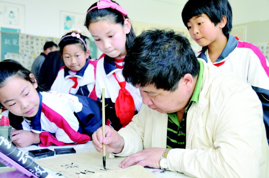 本报5月12日讯(记者 郗运红) 12日,由市书协与市教育局书协联合组织的“书法名家进校园活动”启动仪式在博兴县寨卞小学举行,一批优秀的书法家前来参观指导。 走进寨卞小学,萦绕着一种墨香四溢的氛围,学校的墙壁上都是书法作品。书法名家参观了学校学生的书法作品,指导学生书法社团活动,并在现场创作示范。 寨卞小学书法教师韩广深说:“活动的第一站选在我们学校真的是很高兴,书法名家来给我们指导对学生们今后的学习有很大的帮助。相信今后学生的学习之路会少走很多弯路,并取得很大的进步。” 之后,书法名家给教师讲解了一些教学中应注意的问题及怎样正确地引领学生学习。书法家们还对学校书法教育工作提出意见和建议,希望学校以后的教学过程中能够以启发学生书法学习兴趣为起点,来引导学生正确的学习书法。