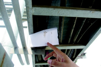 | 出油的电缆可以轻松粘住纸张。 本报见习记者 刘晓 摄 |