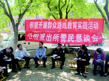 本报5月12日讯(记者 刘光斌 通讯员 李淑娟) 12日,张店区公安分局公园派出所在辖区内社区举办了“警民恳谈会”,参加恳谈会的各单位代表就社区安装摄像头、街头卖假货及幼儿园安保工作等方面,向民警提出建议。 恳谈会后,公园派出所便立即行动,赶赴张店王府井广场,协调解决一起私自停放坏旧车辆致使堵塞安全通道的问题。“警民恳谈会,就是走群众路线,了解老百姓的切身需求,通过我们的工作予以解决。”公园派出所一位负责人说。