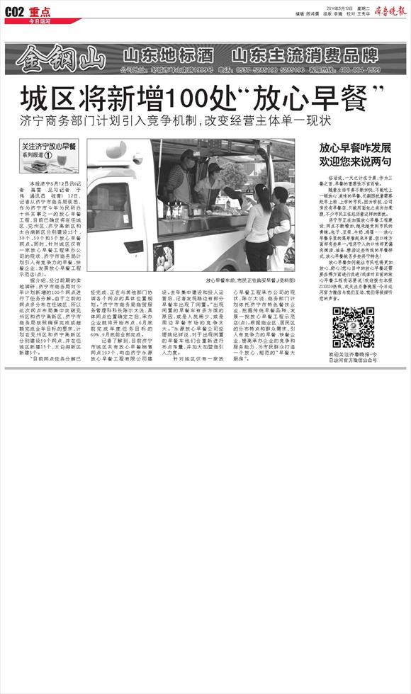 城区将新增100处“放心早餐”