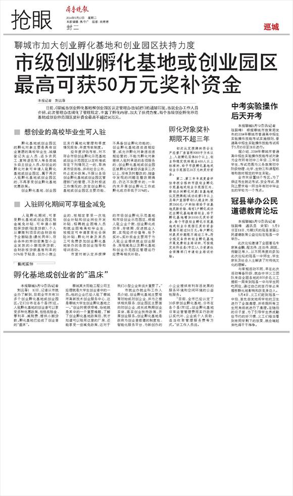 市级创业孵化基地或创业园区最高可获50万元奖补资金
