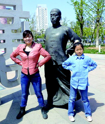幸福的瞬间 百姓故事: 又是一个快乐的周末,天气晴朗。女儿想去市里新华书店看书,这是好事呀,于是我们全家驱车到了市里。在新华书店读了大半上午的书,肚子开始叫了,于是我们离开了新华书店,到大剧院弹了会儿钢琴,随后来到了广场上。由于那天天气好,好多人来广场玩儿,好不自在!当路过这个雕塑时,我说“一看这雕塑就有范儿”,妻子和女儿一听这话,来劲了,各自摆了个造型,果真有范儿!于是咔嚓,记录下了这个幸福的瞬间!