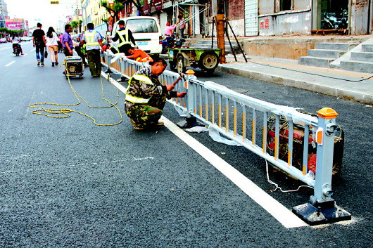 | 和平路开始安护栏啦,路面将实现全线禁停 |