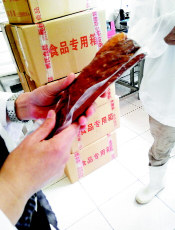 近日,有市民向本报“舌尖上的安全”热线反映,在黄河浮桥往北1公里有一个肉厂有违规生产现象,该厂在加工腌肉时涉嫌注射颜料水。济南市食品药品监督管理局稽查人员检查了该肉厂,发现该厂注水为正常工艺并已报备,但添加色素却未经报备,配料表中也未按规定标明。稽查人员还发现该厂熏肉包装袋不合规,已要求企业进行整改。 本报见习记者 王皇 李师胜 本报记者 蒋龙龙 市民反映>> 肉中注入浑浊颜料水 近日,有市民反映,在黄河浮桥往北1公里处一个废弃加油站旁,有一家肉厂往生肉里注颜料水。“每天半夜开工,一直干到第二天下午,有两台机器用针头给生肉注水。注完水后熏熟了卖,很多水还留在里面。” 11日晚8点半左右,记者在爆料人指引下来到黄河浮桥北一个废弃加油站旁,找到了正在开工的这家肉厂。离厂房不远,记者就能听到厂房内发出的机器轰鸣声。 记者看到厂房正门朝东,厂区西南角的一处白色平房房门敞开,门口放着3个塑料箱,箱内盛满浑浊的淡粉色水。塑料箱旁为一台不锈钢机器,高约2米。一名工人正从塑料箱内不断舀水倒进机器,随后用钩子将一大块生猪肉钩进机器。 据市民反映,该机器便是注水的机器。“水源源不断地注射进生猪肉,然后猪肉还要经过熏烤等工艺。”该市民介绍,“存在很大的食品安全隐患,而且食品使用的色素也未必合规。” 执法检查>> 注水为生产必要工艺 14日,记者跟随济南市食品药品监督管理局稽查人员到该工厂。该厂为2013年注册,主要生产四川熏制腌肉。 查阅该厂原料及销售台账发现,4月1日至5月13日,该厂开工20天,每天加工1000斤生肉,大约使用了20000斤肉,另有盐、酱油等其他配料。在送货记录中,这20天共送出了约19000斤腌肉。 记者与稽查人员一同进入生产车间。记者看到,该厂先将采购的冻肉泡在两个水池里解冻,然后放进注水机中注水。随后,对猪肉进行分割、滚揉、烘烤和熏制,最后包装出厂。 记者看到注水机旁的蓝色塑料箱内盛满了白色浆状物,“这是调料,兑盐水后注到生肉里,能让味道直接进入肉里,为生产必要的工艺。”厂家负责人介绍,100斤肉大约注30斤水,最后出大约90斤腊肉。 稽查人员查阅该企业报备的企业标准看到,注水已报备,为正常工艺。 发现问题>> 添加颜料未报备 检查中,记者发现正在加注的水是粉红色的,且比较浑浊。“注水中加了一些颜料。”厂家负责人取来了一个基本已用完的红曲红包装袋。该负责人介绍,济南人喜欢深色的腌肉,因此添加红曲红。 据稽查人员介绍,按照食品添加剂标准,红曲红可以添加到腌腊肉制品和熟肉制品,添加量也是按生产需要适量使用。该厂家的企业标准中并未标明需要添加颜料。“按规定所有辅料都要列出,而且要有使用记录。”稽查人员介绍,该厂的塑料包装袋配料表中,也无红曲红一物。 在该厂辅料台账表中,记者并没有发现红曲红的添加使用记录。稽查人员查看辅料存放库,并未找到红曲红,也未找到其他色素添加剂。厂家负责人解释,“红曲红刚用完,新货还未到。” 《食品安全法》规定,食品生产企业应当建立食品添加剂查验记录制度,如实记录食品添加剂的名称、规格、数量、供货者名称及联系方式、进货日期等内容。进货查验记录应当真实,保存期限不得少于二年。 处理结果>> 企业十天内整改 稽查人员检查产品时发现,该厂熏肉包装袋没有按规定写明厂家信息。两种包装内外都没有写任何厂家信息,仅在纸壳食品箱上印了生产日期。一边有印明厂家品牌、配料、地址等信息的包装袋,但厂家负责人称很少用,“进货的人要求不写厂家信息,怕被其他人发现抢生意。印了厂家信息的卖得不好,出货量很少。” 稽查人员说,正规厂家不能出厂三无包装产品,即使进货人有要求,也要依法印上厂家信息,包装要整改。根据《食品安全法》规定,预包装食品的包装上应有标签。标签应标明名称、规格、净含量、生产日期、成分或配料表、生产者名称、地址、联系方式等多项内容。 天桥区质监局工作人员向厂家开具了检查结果报告,要求企业十天内完成辅料进出台账、包装、卫生等不符合规定的生产过程的整改。