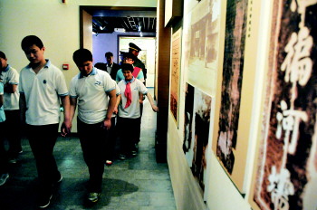 | 特教学校的盲人学生手牵手在博物馆内感受文化气息。本报记者 张晓科 摄 |