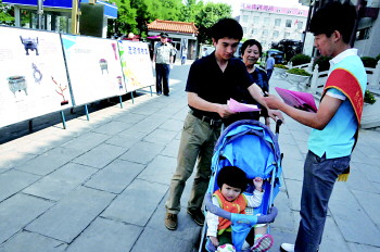 为迎接第38个“国际博物馆日”,18日,济宁市博物馆在街头向市民们发放文化遗产和文物法律法规的宣传资料,开展问卷调查、文物知识和法律法规知识的咨询活动,并有专家免费为广大民众鉴定文物。 本报记者 张晓科 汪泷 摄
