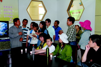 | 青州市养蜂协会会长王得玲在给大家讲解关于蜂蜜的知识。 |