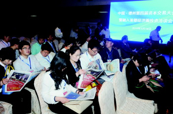 5月18日,本报中国·德州第四届资本交易大会暨融入首都经济圈投资洽谈会专刊在开幕式会场内受到嘉宾的关注。 本报记者 马志勇 摄