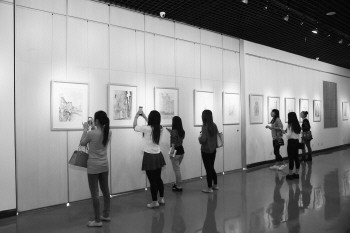 5月16日,在德州市博物馆,由德州学院组织的俄罗斯艺术家四人作品展开幕,不少市民前来观看,并用手机等记录。