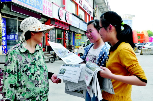 18日上午,来自北镇中学初中部和滨城区第四中学的200余名学生,走向街头小巷义卖报纸,筹集善款,用自己的实际行动帮助残疾人。