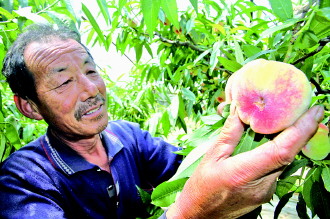 18日,环翠区张村镇里口山的桃农正在采摘蟠桃。眼下正值大棚蟠桃成熟的季节,第一批本地蟠桃也正式上市,价格在20元/斤左右。大部分供给超市,一小部分果农自己销售。