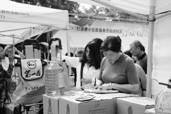 本报5月18日讯(记者 张童) 18日,“健康直通车,服务进万家”首站开进张店铁路小区,“第一店”花生油展位前人气很旺。 上午8时30分,铁路小区的广场上人头攒动。十几家展位前,选购商品的市民已等待在展位前。市民高先生选购了一桶5L头道压榨花生油后,获赠了一辆购物车。“比在超市买便宜不少,油新鲜,还赠个小车。”高先生高兴地说。 第一店花生油的总经理曾广社称,作为淄博本地的企业,希望生产的油品能让市民吃着安心。“今天上架出售的油,都是昨天刚榨出来的,头道油不仅香,而且有营养。我们加入健康直通车的行列,就得让老百姓切实觉得实惠!”