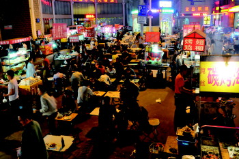 | 许多大排档会营业到凌晨两点左右。 本报记者 王鸿哲 摄 |  | 酒吧里的原创音乐吸引了很多人。 本报记者 王鸿哲 摄 |  | 晚上9时多,张店步行街上的夜市依然客流如梭。