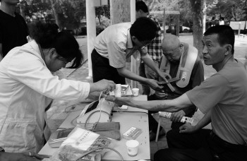| 漱玉平民大药房工作人员为居民提供按摩、查微量元素等多种服务。 本报记者 姜文洁 摄 |  | 市民领到便民服务卡。 本报记者 姜文洁 摄 |  | 居民边等待查体边看报纸。