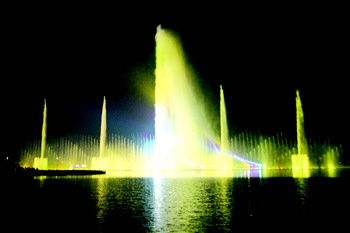 章丘的夏夜是属于绣源河的。绣源河取代巴漏河,不只是名字的更替,更是把不堪回首的往事彻底挥去。巴漏河是一条季节河,一年中多半时间无水,成了附近村民倾倒垃圾的场所。“垃圾河”就成了它听惯了的称谓,巴漏河却无可奈何地接受岁月煎熬。一条河,一个华丽的转身,今日的脱胎换骨,它睁开一双水汪汪的眼睛,出落得如同大家闺秀。 绣源河夏夜前夕的夕阳铺落在水面,呈现出一幅“远去丘山近现湖,祥云展翅鸟宏图。夕霞簇抱滨河绣,水色不同镜影浮。”的画面。当夜幕降临时,“夜幕”一词被绣源河诠释得淋漓尽致。随着音乐的跳动,一股股水柱欢快地冲向高空,把白天的冲动铆足了劲,似乎要与苍穹的星辰握一握手,告诉星星:世界最大的水幕电影,亚洲最大的音乐喷泉,在这里即将如梦如幻地上演。欣喜中,绣源河关注着小城的日新月异。牵手《快乐向前冲》,把齐鲁的快乐聚集在它的身上。河畔移步易景,数以万计的游客,慕名前来点击着它的美丽,它的快乐。河道两侧,芬芳馥郁的气息,放松了游人的心情,或是沿河散步、或是驻足观景。绣源探春的容颜,打开了济南风景名胜的门,提名“泉城新八景”,且一路小跑,跻身章丘新八景。 黑,是夜的底色,如同一块巨大的幕布,挂在河上。站在绣源河的索塔大桥上,河水清新的气息让人兴奋不已。当一柱一柱的喷泉次序地列好排,上百米高的水柱在这片水域上一跃而起,排列成一块巨大的荧幕。在音符的指挥下,河面上绽开了独具特色的美丽,时而舒缓,时而激昂。舒缓之时,变幻的色彩,可是敦煌的飞天临境,可是瑶池的仙女下凡,挥舞着长袖,翩翩起舞;激昂之时,一百多米的水柱,恰似蹦极的少年,竞相比高,又如庆典迎宾的礼炮,场面气派却无污染的忧虑。色彩在水柱上呈现出的绚丽,粘贴在夜幕的底色上,美轮美奂,置身其间,如临仙境…… 风传递着这片净土的信息,河水带着泥土厚浓的味道,充满了荣光与希望。河水的眼里流露出了对锦屏山翠色欲滴的情感,河水的心里惦念着七星台最美的夜空……身旁一座新城正在茁壮成长,秀美的身姿倒映在河面上,流动着一曲与时俱进的颂歌。于是,音乐喷泉翩翩起舞时,告诉沿途的人们,幸福已经启程。