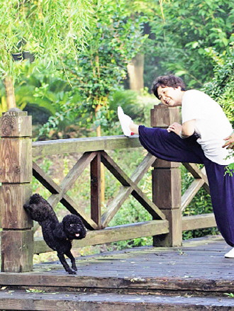 时间:2014年5月1日 自述:看到主人在公园压腿锻炼身体,宠物狗也模仿了起来。 点评:你这么聪明,你的小伙伴知道吗?