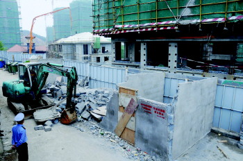 20日,执法人员将崂山区午山馨苑廉租房建筑工地周边一处有重大安全隐患的违法建筑拆除。据了解,该处违法建筑位于半山腰,共600余平方米,平时作为建筑工人的宿舍、餐厅使用。该建筑为临时板房结构,一旦遇到雨季发生山体滑坡、塌方、落石等地质灾害,有重大安全隐患。