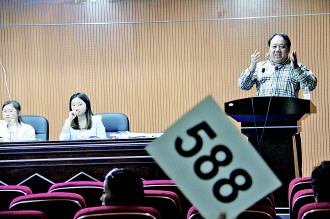 日前,由中国商业企业管理协会企业文化专业委员会和北京春秋华宇拍卖有限公司举办的当代(威海)春季拍卖会在威海文化艺术中心美术馆举行。由于所有的书画作品都是低价起拍,现场经常出现六七位竞拍者同时举牌的场面。据主办方透露,参加本次拍卖会的超过八成的市民都是首次参加拍卖会,除了淘画,更多的是来学习书画拍卖知识。