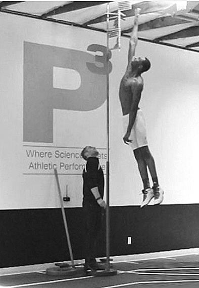 | 维金斯的弹跳十分惊人,据传有112厘米。 |