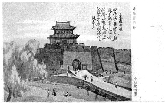 【口述城事】 文/片 李海流 徐向东 军用明信片是根据军事、战事用邮需要而发行,据史料记载,最早的军用明信片是北德意志联邦于1870年发行的,它专供普法战争中的德军使用。军用明信片问世,比奥地利的“世界第一片”只晚1年,在明信片的“辈分”中,应排“老二”。从此以后到20世纪初期,发行军用明信片的只是欧洲几个军事强国和亚洲的日本,发行目的是供作战官兵通信使用。近日,枣庄集邮爱好者杨金海在天津邮品拍卖会上购得一枚印有“峄县西门外”的日本军邮明信片。 这枚印有峄县西门外风景的明信片由日军侵略峄县时由随军画家小椋繁治绘制,在日本印刷,规格为140毫米×94毫米,图案画面规格为95毫米×88毫米,由日本陆军恤兵部发行。经过半个多世纪,如今这枚记载着特殊历史的藏品又从天津一名藏家的手中回流到枣庄,它记载了一段特殊的历史,成为日军侵略枣庄罪行的佐证。明信片上的“峄县西门外”影像就是今天的山东省枣庄市峄城区原峄县城池的西门外。 这枚明信片上的图像,全方位展现了峄县西门外当时的风土人情,忠实地记录了峄县西门城楼外优美的自然风光。在高大壮观的峄县西门城楼外,不但有树影婆娑的杨柳树,还有汩汩流淌的承河水,河边浣洗衣服的妇女,挑着新鲜蔬菜进城的农夫,来来往往进出城门的人流,城外南侧放牧的场景历历在目……当时的城墙内外壁为长条块石砌垒,中间填以夯土毛石。城门上方的城墙上有城楼,为砖木结构,上下两层,形如宝塔,飞檐斗拱,雕梁画栋,中间设悬空板,周边设护心栏,高大森严,气势恢宏。城楼高出城墙丈余,是县城的城头堡,也是护城军官的指挥所和瞭望台。城墙中间是平坦的通道,内外两侧建有规则整齐的凹凸型垛口,既是守城士兵的掩体,又是装饰城墙的风景。 在画面的右上方题有一首小诗:“峄县城头秋色艳,悠悠万里运河边。炮声一发飞鸿断,战罢仰来明镜天。”落款作者为槌本业,可能是一名日军记者或秘书,诗中描绘的是当年峄县城外美丽的秋色,战争打响后,通信被迫中断,战争结束,仰望明镜的天空,表达出一个日军战士在峄县的心境。 明信片的正面印有“军事邮便”字样,还加盖了矩形的“军事邮便”戳和“检阅济”印章,印章中责任者栏目中同时又加盖了名为“宿原”的椭圆形名章。可见当时这枚小小的军邮明信片是经过多次审查、阅检盖章才发出的。明信片正面内容翻译为,发件人:群马县邑乐郡小泉街道国民学校初等科(相当于高中)第五学年,御次同各位同学写;收件人:北支派遣(侵华日军)第4226部队细谷敏雄收;信件正文内容:学校全体同学精神饱满,努力学习,小川晏弘君和其他同学都在给前线的学友写信。大家遵照松北先生的教导,通过努力刻苦学习都通过了结业考试,升入第六学年学习。一部分同学去上级生学校继续努力学习,争取更多地、更好地受教育。从信件的内容可以看出,这是御次和各位同学一起与他们的学长之间的通信。 明信片由于通信内容公开,保密性差,许多国家不发行军用明信片。上个世纪,军用明信片在战争中或是非常时期在欧洲和日本一些少数国家发行过,它的发行范围、发行方式、发行数量均有特殊性,因而给集邮者带来收藏契机,这枚在战火硝烟中实寄的军邮明信片更为难得。据考证,这是目前国内外所见,涉及到山东省枣庄市有关内容最早的一枚明信片。