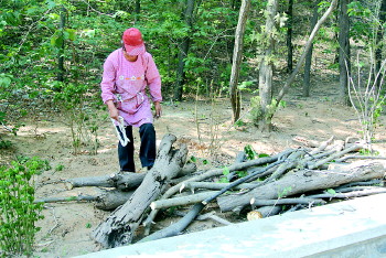 | 工作人员:为了柏树更好地生长,清理野生杂树 | |