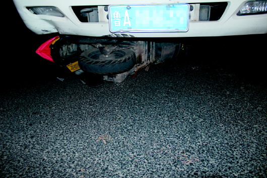 | 中学生无证驾驶摩托车闯红灯,摩托车摔倒钻到了货车底下,中学生不幸身亡。 (交警供图) |