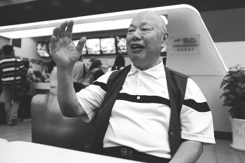 | 老人说,除了篮球赛,烟台还有很多让他期待的东西,比如螃蟹和花生。本报记者 韩逸 摄 |