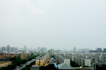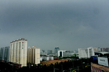21日下午,潍坊市区东边乌云笼罩了天空,也下起了一阵小雨。当日中午,潍坊市区气温高达34℃,但是到下午3:30左右,市区东南方向开始有乌云聚集,但是西北方向一直是有太阳高照,让一个城市看上去东边下雨西边晴。 本报记者 孙国祥 摄影报道