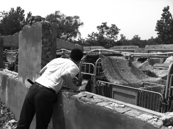 | 陆女士家的半亩养猪棚已经被拆得不成样子。 本报记者 赵松刚 摄 |