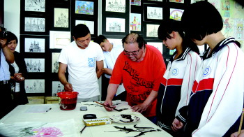 21日,冯训文国画教育基地揭牌暨《跟冯训文学国画》教学光盘首发式在牡丹区实验中学举行。 活动现场,冯训文向牡丹区实验中学捐赠两幅精心创作的国画作品和200套《跟冯训文学国画》教学光盘及辅导材料,并为学生授课,传授国画绘画技巧。 据了解,冯训文是国画家,现为国家一级美术师,中国画院院士,中国美术家协会会员,中国书画研究院教授。他一直关心家乡教育文化事业的发展,曾向菏泽慈善书画院一次捐赠66幅国画作品。2013年在牡丹区安兴镇设立小学国画教育基地,希望培养更多的青少年走上艺术之路。 本报记者 袁慧 通讯员 邹爱武 摄影报道