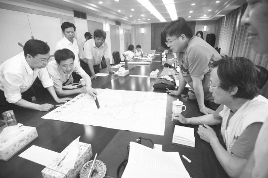 ◤22日,济宁市港航局的专家给考察队成员讲解大运河航运情况。