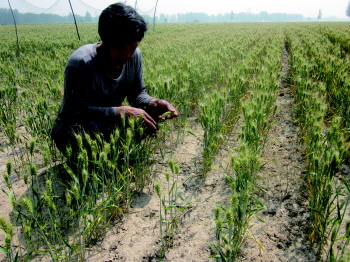 由于小麦长期为得到灌溉,长势矮小,枯黄。 本报记者 赵念东 摄