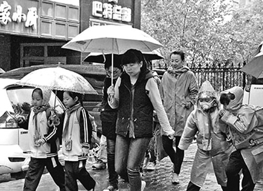 | 22日傍晚,新疆乌鲁木齐沙依巴克区公园北街的社会秩序恢复正常。图为家长们接放学的小朋友回家。 据人民日报 |