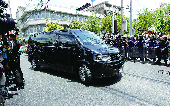 |  | 23日,在泰国首都曼谷,据信载有前总理英拉的汽车抵达陆军俱乐部。