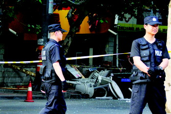 本报热线6610123消息(记者 张倩倩) 23日下午4点,毓璜顶南街一家烧烤店发生爆炸,整个楼体发生强烈震动,烧烤店内被炸得乱七八糟。当时店里无人,不过路边有人被炸飞的玻璃碎片戳伤。芝罘区公安部门几十名警察将现场封锁,从店里抬出五六个液化气罐。目前,爆炸原因尚不确定。 23日下午5点,记者来到毓璜顶南街红星烧烤店,现场已被20多名警察封锁。记者看到,店门口的桌椅已经坏了,烧烤店的牌子滑落下来几十厘米,地上有许多的碎片。 该楼4楼一位居民讲述了爆炸的过程:“当时我刚好在家,我清楚地记得是4点10分,从楼的背面冒出来一个大火球,接着就飞到天上熄灭了,声音非常大,‘轰’的一声,把我吓坏了,楼震动了。”该市民随后出来,楼梯的扶手已经变形,二楼居民家的防盗门都掉下来了。 据了解,该烧烤店在该小区内已经有十年了。发生爆炸时店内没人,但有的路人被炸飞的玻璃碎片戳伤,已经到医院进行救治。 目前,该店发生爆炸的原因还不能确定,市民猜测可能是液化气罐的问题。记者在现场看到,警察从店内抬出五六个液化气罐,并对其进行检查。晚上7点时,警察仍在现场。